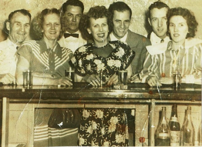 George may not have danced but plenty of the others did. Occasionally my mother even hired square dance callers. That was fun to watch! Most of the couples were Irish and had learned to dance the Irish way . . . standing ram-rod straight, arms stuck to their side. I would watch them with amazement as they attempted the “dosie-doe” and “allemande left” or “circle to the right” or “promenade around.” Lots of bodies bouncing up and down, many hitting the overhead pipes, and crashing into each other as they promenaded around their circle. It was the 50s when most men wore white dress shirts and after a while the top buttons became undone, the sleeves were rolled up while sweat poured down their faces.